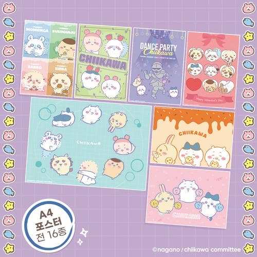 Small and Cute Friends Meet Chiikawa every day! Inside the random box, there are illustrated posters of Chiikawa friends in random designs. They are great as gifts, too.