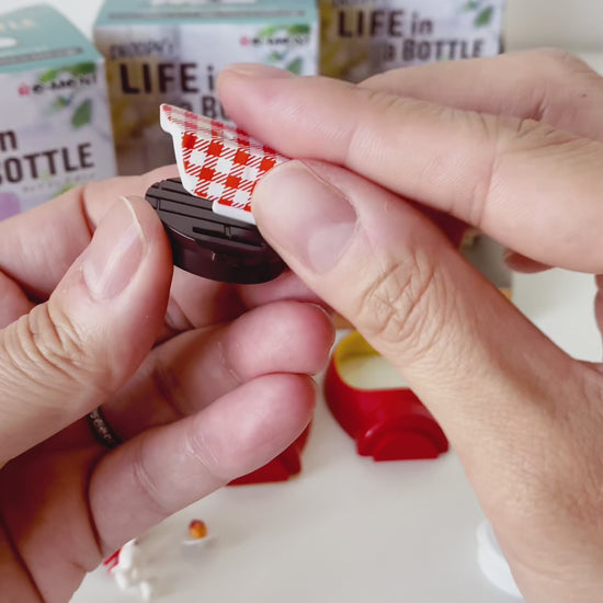 The "Re-ment Snoopy's Life in a Bottle" collection encapsulates the charming world of Snoopy and his friends within intricately designed miniature bottles. Each bottle features delightful scenes of Snoopy's daily adventures, from napping atop his iconic doghouse to embarking on imaginative journeys with Woodstock and the Peanuts gang. With meticulous attention to detail and vibrant colors, these miniature dioramas capture the whimsy and nostalgia of Snoopy's life, inviting viewers to immerse themselves in his endearing universe. Whether displayed as a cherished collectible or used to add a touch of whimsical charm to any space, the "Re-ment Snoopy's Life in a Bottle" collection is sure to delight fans of all ages with its delightful portrayal of Snoopy's timeless charm and joyous spirit.